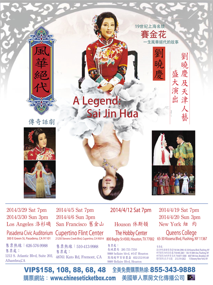 由天津人民劇院製作、田沁鑫執導的舞台劇《風華絕代》將於三月展開美國巡演,在舊金山、洛杉磯、休士頓、紐約共演出七場,由美國華人票房文化傳播公司主辦,洛杉磯場次訂於3月29、30日在帕薩迪納大劇院演出兩場。該劇自2012年首演以來,即佳評不斷,尤其對飾演主角賽金花的劉曉慶更讚賞有加。