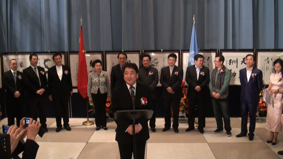 此次畫展主要承辦方的美國網絡電視總裁楊浩對新華社記者說,這是中國表演藝術家首次在聯合國總部舉辦書畫展。此次展覽為在紐約聯合國總部和北美地區的朋友帶來了中國文化的藝術享受。“詩文隨世運,無日不趨新”,此次書畫展展示出中國當代表演藝術家兼收並蓄、融會貫通的藝術成就。 畫展開始前,張鐵林、唐國強、姜昆等表演藝術家早早就被粉絲們拉著簽名和拍照,整個畫展充滿了歡樂和諧的的氣氛,讓剛剛抵達美國的這些藝術家們,連時差都沒有了。