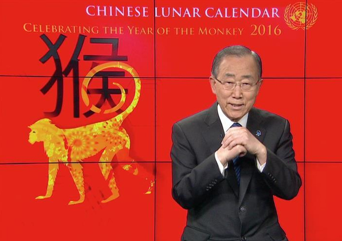 ![]() 中國新年猴年聯合國秘書長向全球的華人拜年