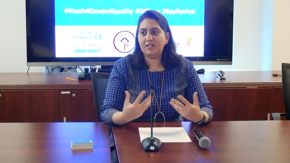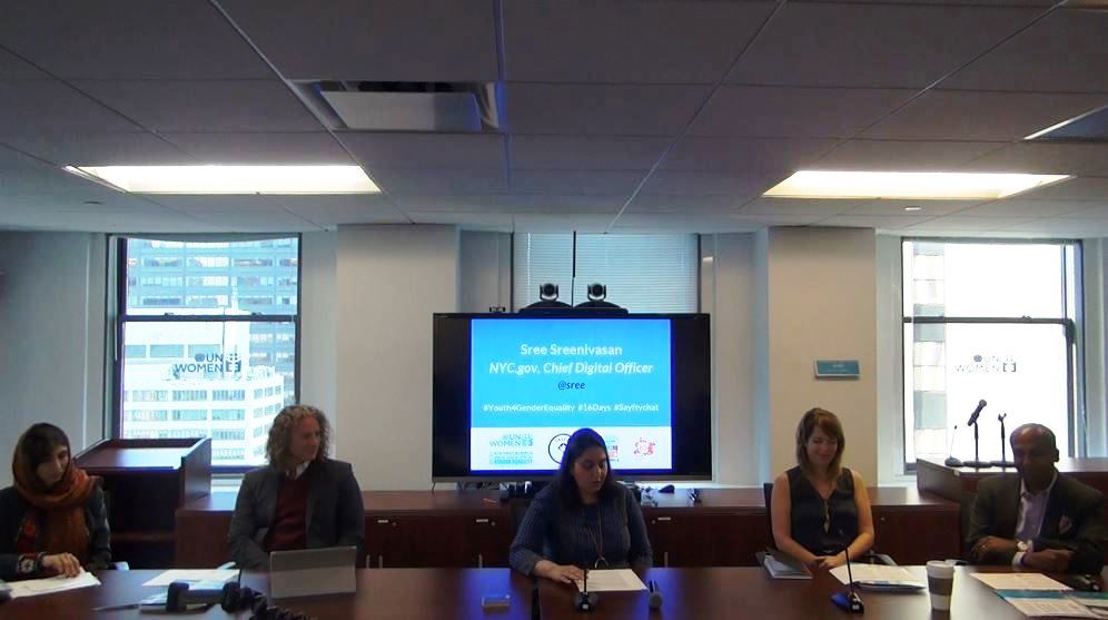 聯合國婦女署高級顧問、工作宣傳助理秘書長拉比-喀喀拉 久安電視聯合國婦女署總部報道:11月28日下午聯合國婦女署總部召開“性別平等、青年男女是合作夥伴”研討會,邀請久安電視前往報道並商談有關婦女權益、停止對婦女和女童暴力、利用技術手段讓青年婦女和女童更安全及相關合作事宜。參加研討會的有包括微軟創辦人之一、技術負責人及關註婦女權益的企業婦女領導人等。 |
