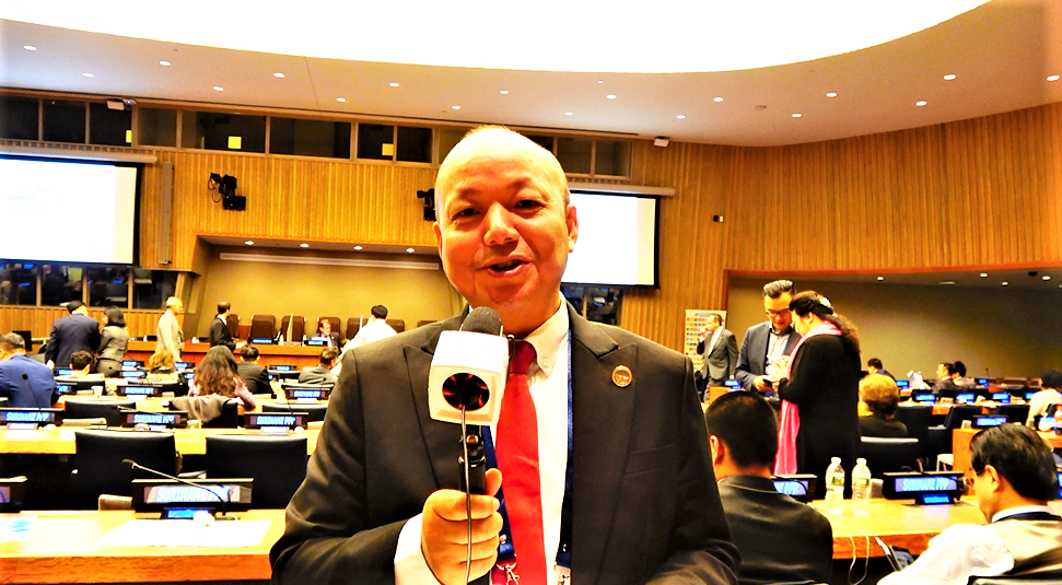 联合国非政府组织委员会主席布鲁斯-纳提斯主持会议 美国久安电视采访中生金控投资有限公司执行董事梅德辉 联合国四号会议厅现场 (责任编辑:admin) |