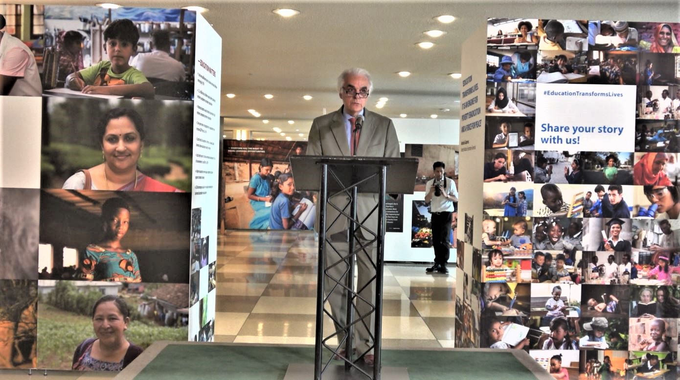 编者按语:7月9日至18日 是联合国召开高级别政治论坛期间,这是联合国最高级别政府间的政治会议。联合国高级别政治论坛发表联合声明呼吁重申对普及教育的承诺。为此,联合国教科文组织在联合国总部举办为期两个月的“教育改变生活展”。 联合国教科文组织纽约代表以及日本、新加坡、阿根廷等多国常驻联合国大使出席了联合国教科文组织举办的“教育改变生活展”,请看视频报道。 联合国教科文组织在联合国总部举办教育改变生活图片展 联合国教科文组织