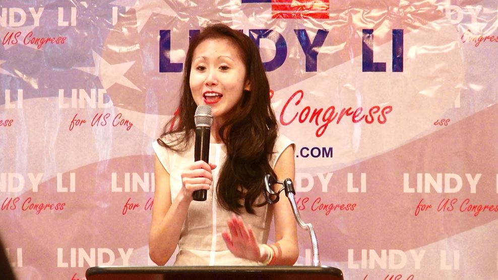 久安電視綜合報道:昨天晚上費城華裔女生李林笛(Lindy Li)17日在紐約華人之都法拉盛舉辦籌款造勢活動,為競選濱州第七選區國會眾議員造勢,已在美國國會任職多年的華裔國會眾議員孟昭文親臨現場為李林笛助陣,對這位年輕有為的華裔女生熱心政府事務,積極參政的舉動給予高度贊揚。