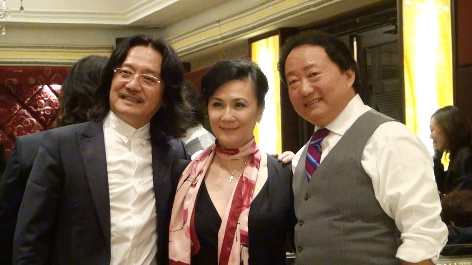 李盾(左)與盛唐多媒體影音制作公司總裁唐勇夫婦 久安電視紐約法拉盛報道:中國音樂劇泰鬥李盾昨天率團一行六人來到紐約法拉盛,與發小現為盛唐多媒體影視制作公司的總裁唐勇相聚。唐勇總裁昨天在法拉盛君豪酒店帝王廳盛宴款待李盾一行。紐約百老匯著名制作人托尼、著名電視主持人崔丹、久安電視CEO、美國中文在線總裁孫連生以及華爾街精英、藝術家等共20人參加了晚宴。