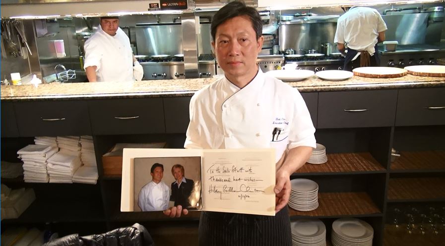 紐約有十三家的媒體記者同時來到Li-lis法國餐館采訪 久安电视纽约报道:香港籍大廚錢鶴(Hok Chin)昨29日獲得最具創新廚藝獎(Creative Culinary Award 2015 ),掌勺於曼哈頓下東城高級法國餐廳的他,致力於研究法國傳統餐點,如今已經從業20餘年,他獲得過眾多美國頂級廚師的獎項,如美國最佳廚師(Best Chef America 2014)、紐約時報最佳廚師(New York Times Review “Don’t miss” 2010)。