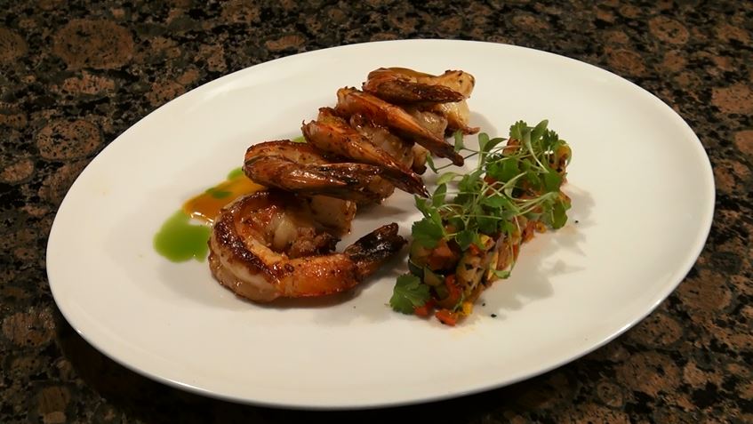 主餐中的特色為雅文邑鴨胸(Duck Breast A L'armagnac),鴨肉使用甜胡椒(Allspice)、五香粉(five Spice)、茴香籽(fennel spice)、香菜(coriander)來腌制數小時,配菜並且使用了芥藍、油菜,醬汁並且精心調配,使用西梅脯醬加入砂糖、蘋果、肉桂、橘皮來熬制,澆在鴨肉之上。蒜蓉對蝦也是一道特色菜肴,大蝦飄出淡淡蒜香,配菜使用普羅旺斯式雜燴,包括西葫蘆、青椒、紅椒、洋蔥、番茄、茄子,成色極佳。