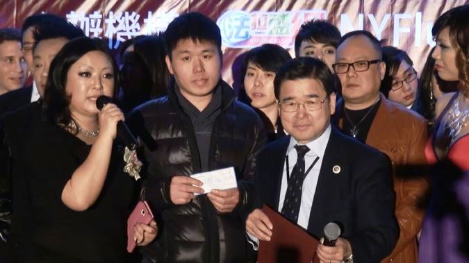晚會開場前,市議員顧雅明向法拉盛網創辦人梅麗娜頒發獎狀,一起把法拉盛網為被鏟雪車撞死的孕婦林敏籌得的善款$1130 支票交給林敏的弟弟,希望為林家帶來一點溫暖和關懷。顧雅明議員同時也高度贊賞梅麗娜為活躍社區文化娛樂生活所做的貢獻。