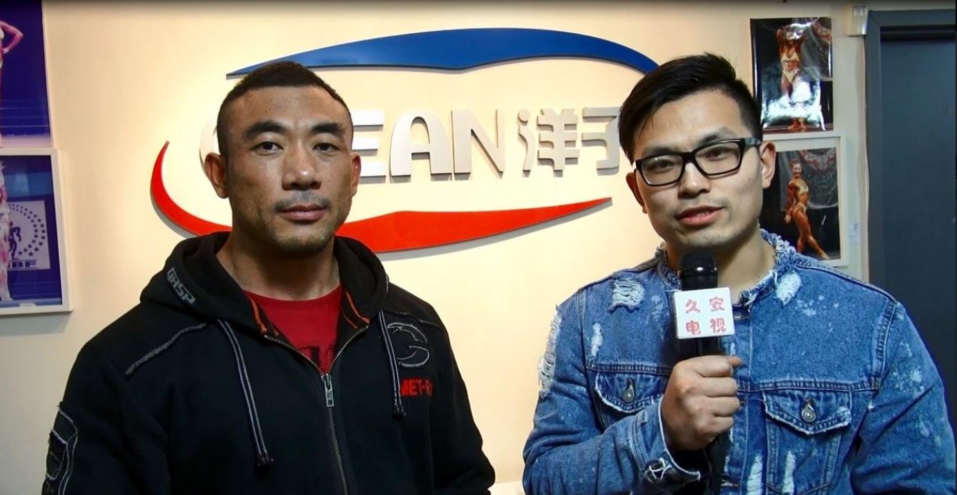 世界健美錦標賽冠軍姜熹與洋子全明星教練和Vip會員合影 世界健美錦標賽冠軍,中國健美界一哥姜熹在接受美國久安電視采訪