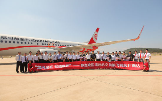 福州航空在長樂國際機場舉行了簡單而溫馨的接機儀式及logo揭幕活動。福建省委常委、福州市委書記楊岳,福州市委副書記、市長楊益民,常務副市長陳大強等市委市政府領導,民航局空管局福建分局等行業主管單位領導、福州國投集團等股東代表、機場各單位領導以及福州航空領導出席了活動。