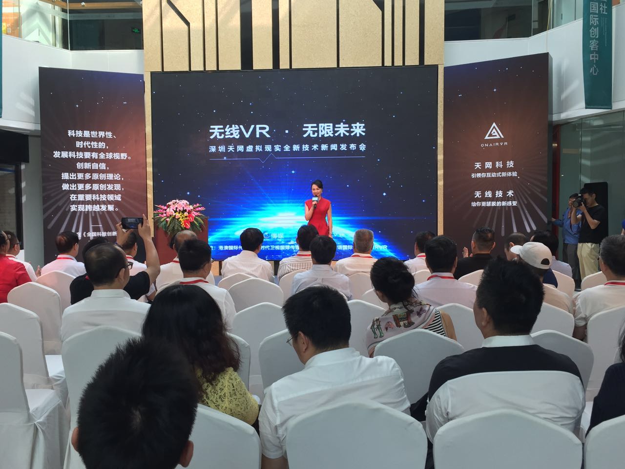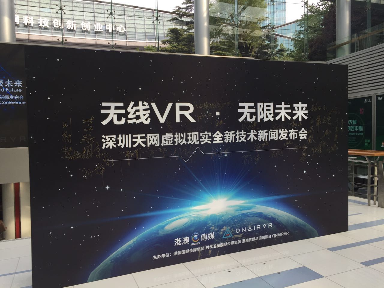 发布会上,深圳天网展示了其最新的科研成果VR无线传输技术。这是其作为国内文化创意科技化无线推动在全球的首次发声。全国政协、中国文联、中国广播电视剧制片委员会、新华社中国图片社、中国文化传媒集团、中央电视台书画频道、广东省粤港澳合作促进会、中国市长协会、长城书画协会等单位的领导出席了此次发布会。全国政协常委、原解放军吴双战上将,中国文联副主席白淑湘女士和老领导韩志厚、李德顺、张振远等领导和嘉宾出席了发布会。中国广播电视协会制片委员会会长张明智,全国政协委员、中国文联香港分会执行主席吴欢,央视书画频道董事局主席王平和新华社中国图片社社长毛洪成先生到会发表了讲话。